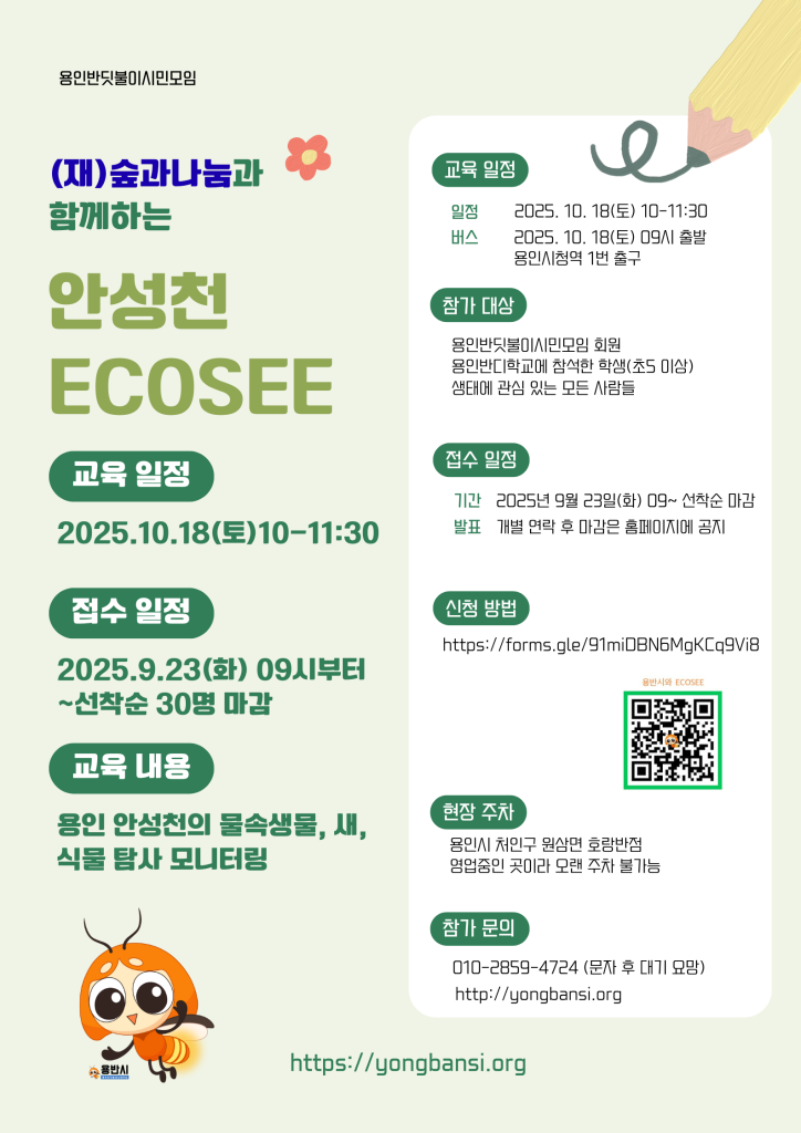 용인반딧불이시민모임을 사랑해주시는 분들께 ECOSEE 생태교육 참여 안내드립니다.