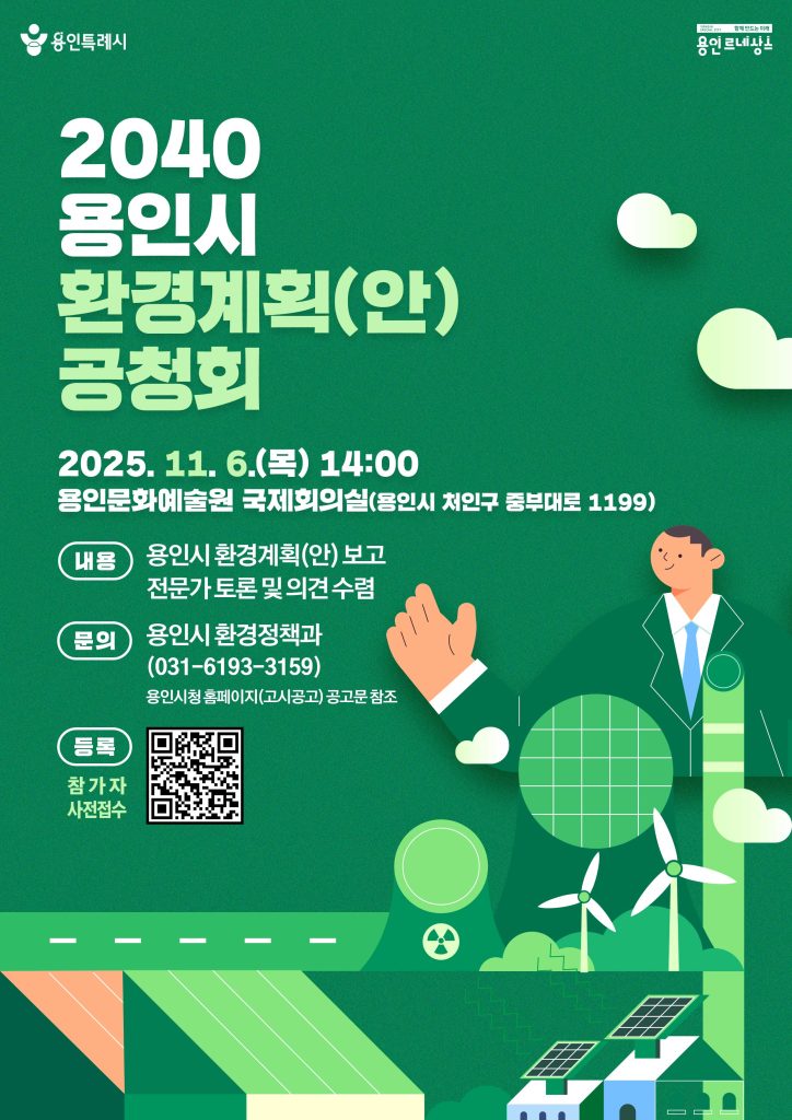 2040 용인시 환경계획(안) 공청회가 11월 6일 목요일 오후 2시부터 있습니다. 환경과 관련된 정책 등 우리 용인 반딧불이를 지키고 보전하는데에도 관련이 있습니다. 관심있으신 분들의 많은 참석 부탁드립니다.