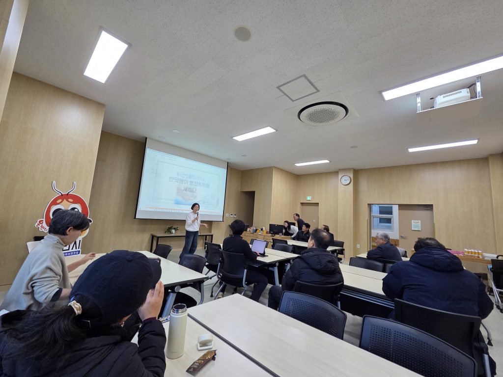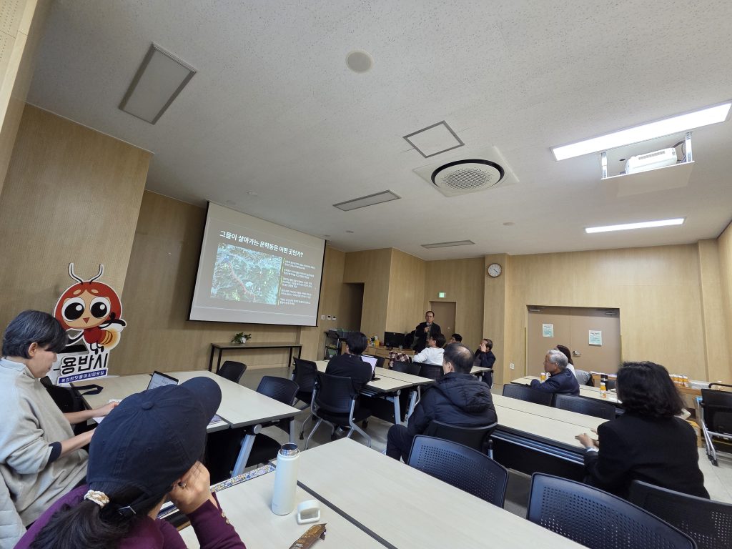 안녕하세요. 용반디입니다. ^^; 2025년 11월 18일 오후 3시 30분부터 용반시 회원님들과 경기도에 계시는 여러 환경보호 관계자 분들이 함께 용인 기후변화센터에 모여서 용인시 2025년 반딧불이 보전과 복원을 위한 세미나를 열었습니다. 강사는 정정호 이사님이셨고요. 많은 분들이 참석하셨습니다. 2025년 용반시 한해의 여러가지 활동과 사업을 결산하는 성격의 세미나라고 생각해도 무방한 회의였습니다. 고생들 하셨고요. 저녁까지 준비해 주신 운영진분들의 노고를 칭찬합니다. 내년에도 힘찬 활동 부탁드립니다. 건강하세요!